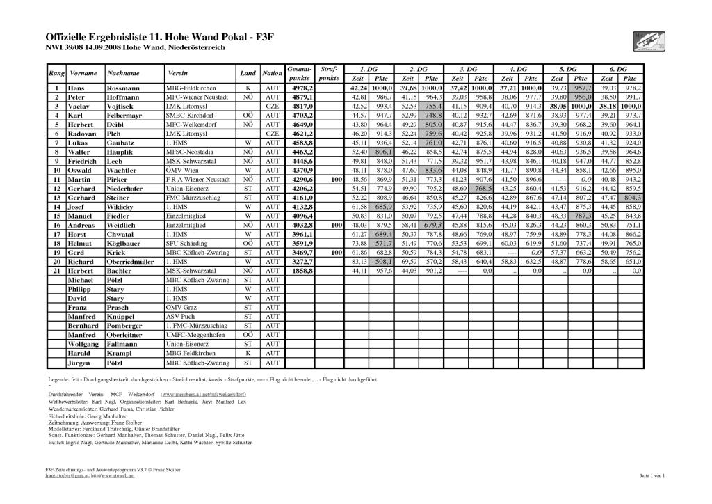 | 14. September | A | Hohe Wand | F3F Downhill |  Ergebnisse